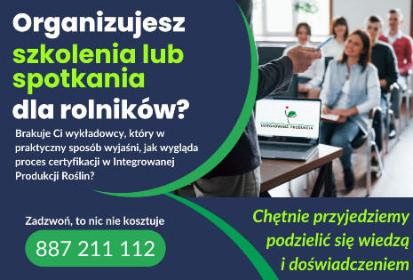 Jeżeli planują Państwo szkolenie dotyczące integrowanej produkcji roślin, spotkanie informacyjne o systemie IPR lub wydarzenie branżowe dla rolników, podczas którego potrzebne jest krótkie przedstawienie zasad certyfikacji, można skontaktować się z nami w sprawie możliwości udziału w takim spotkaniu pod numerem 887 211 112 lub potrec.michal@ekogwarancja.pro